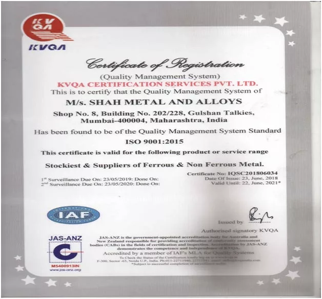 Quality is an important part of Shah Metal & Alloys. The base of the Shah is mainly built on quality policy. We are the ISO Certified manufacturer & supplier maintains our high-quality standards through our personal commitment and teamwork. We only use supreme quality raw material supplied by our most trusted vendors to ensure the quality of final products. Each product is examined through different quality checks and tests.